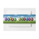 Modern colourful Easter illustration featuring metalic style foil wrapped coloured Easter eggs with "Happy Easter" lettering on a spring sky background.