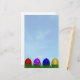 Happy Easter illustration featuring colourful painted Easter eggs in the grass with the blue sky in the back.