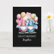 Colourful happy gnomes with balloons card