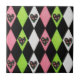 Colourful Harlequin Print with Rose Hearts Ceramic Tile