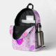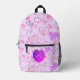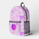 This fun backpack design features a colourful heart pattern over a pastel purple background. Personalise or remove the initial letter monogram that is centred in the heart on the front pocket. A fun design for a gift to be used for back to school, diaper bag, picnics, the beach, travel and more.