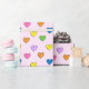 A wrapping paper with a colourful heart pattern on a light pink background. Customise the light pink background colour among other options.