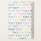 A cute and nerdy notebook with a hipster multicolored glasses pattern with red, blue, yellow, orange, aqua, green, black, purple eyeglasses.