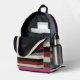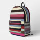 Colourful Horizontal Stripes Pattern Printed Backpack designed by Nisha Prabhu. Add a pop of colour and style to your everyday look with this colourful horizontal stripes pattern printed backpack. Perfect for school, work, or travel, this eye-catching backpack is sure to turn heads wherever you go. Made with durable materials and featuring multiple pockets for organisation, this backpack is equal parts fashionable and functional. Stand out from the crowd with this trendy and versatile accessory.