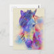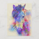 Postcard depicts a beautiful artistic design of a horse head in colours of blue, purple, red, beige and more.