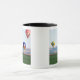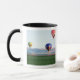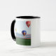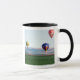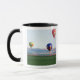 Colourful hot air balloons float over wheat mug