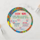 Colourful hot mess blast multi colour round invitation - colour splash rainbow scribble primary colours red blue green yellow colour wheel artist palate watercolors oil paints acrylic paints wool yarn crayons markers...
