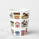 Colourful pattern of houses decorate this paper cup perfect for serving beverages at your next house warming party or realtor's open house.