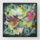 Colourful Hummingbird Digital Silk Art Square Wall Clock