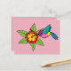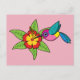 Colourful Hummingbird on Hibiscus Tropical Flower Postcard