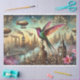 Experience a breathtaking moment where a delicate hummingbird navigates a magical mechanical sky of Victorian wonder. Elaborate hot air balloons adorned with complex gears, brass instruments, and gothic-inspired details dance across the landscape. Rich, mysterious colours and metallic accents capture the essence of industrial fantasy. Each carefully crafted element reveals a universe of magical technological dreams. Transform your mixed media projects with this extraordinary artistic journey.