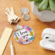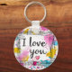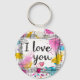 This vibrant keychain features a round design with an artistic, colourful background filled with splashes of pink, blue, yellow, and other bright hues. At the centre, the words "I love you" are written in a stylish, handwritten font with a small heart below the text. The background has a playful and whimsical feel, framed by a sketch-like border that adds a touch of artistic flair. The keychain is both functional and expressive, making it an ideal gift to show affection and appreciation to someone special.