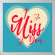 Colourful I miss you design with yellow coloured hearts and red coloured text on cyan blue background for loving people who miss their loved ones and wanna give this design to show them they are missing them so much.