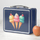 This is a standard metal lunchbox that appears to work just fine. We designed this box ourselves with an uploaded photo and custom text on the front and back. It looks absolutely beautiful except the front of the lunchbox is not centered like it shows in the photo. The print borders don't align with the inset flat part of the box where the preview photo online showed it perfectly centered in there. The back looks nice and centered though.