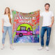 Add this colourful blanket to your camper decor. Has a multi colourful background with a bright purple, pink and green camper and the saying "Id Rather Be Camping"
