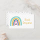 Colourful illustrated rainbow, baby shower book request card. Illustrated rainbow with dots and heart doodle accents.