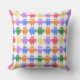 Rows of multi-coloured robots on colourful, fun cushion for kids.
