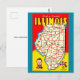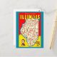 Colourful Illustrated Vintage Illinois Map Postcard