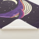 Colourful illustration portrait of cute whale in space with moon and stars. Hand drawn wild animal.