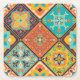 Colourful Islamic-inspired patchwork tile. Square Paper Coaster