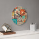 Colourful Islamic Patchwork: Vintage Tile. Large Clock