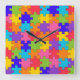 Colourful Jigsaw Puzzle Pieces Happy Puzzler Square Wall Clock