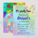 Colourful Jigsaw puzzles pieces invitation card. Colourful puzzles on a white background, Name of child in bright blue colour. Puzzle pieces in the colours, blue, yellow, green, pink red and blue making this design perfect for girls and for boys