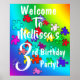 Colourful jigsaw puzzles pieces birthday party themed welcome to party print, Colourful puzzle pieces , colours are turquoise, blue, yellow, purple, lilac and pink