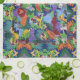 modern multi-coloured children's design with various jungle animals, lion, tiger, giraffe, hippopotamus, monkey, toucan, zebra, and deer.
