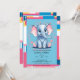 Adorable baby shower design featuring a cheerful blue elephant with playful pink ears, surrounded by bright patterns and jungle-inspired accents. Perfect for gender-neutral or baby boy celebrations. If you need any other matching product or customisation, kindly message via Zazzle.