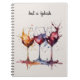 Colourful Just a Splash of Wine Watercolor notebook. If you love a glass of wine and the artist who splashed it on a notebook, this is for you! Watercolor paint splashed across a wine glass adds a new meaning to "Just a Splash." This design is perfect for wine lovers and anyone who enjoys a glass or two with friends or family. You can edit "Just a Splash" or leave it as is.
