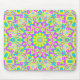 A mouse pad with a colourful high resolution kaleidoscopic design.