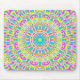 A mouse pad with a colourful high resolution kaleidoscopic design.