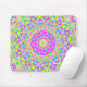 A mouse pad with a colourful high resolution kaleidoscopic design.