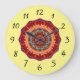 Colourful Kaleidoscope Clock in Reds on Yellow