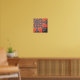 An intricate geometric pattern with a kaleidoscope effect features vibrant colours like orange, pink, and blue. Symmetrical shapes create a mesmerising, hypnotic design.