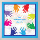 Colourful kids handprints with blue borders square poster print. Colourful handprints- palm and fingers- in red, orange, green, blue, purple that form a circle and colour splashes. There are sky blue and dark blue borders around it. Change text with you motivational/inspirational quote. You can change background colour –sky blue- to any colour from Zazzle chart. A creative, cheerful poster design perfect for children room decoration, school, kindergarten, community concepts etc.
