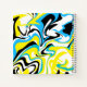 A liquid, abstract art inspired design which features psychedelic swirls of yellow, white, blue and black colours, with the aim of making your kid's personalised gift look colourful and artistic.