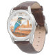 The watch looks really great! Very sharp and well done. The leather band is really nice, though for a man's watch I think it should be longer. Unfortunately, it isn't big enough for my husband's wrist but I will get a replacement because he is very excited to wear it!