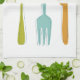 This retro kitchen towel, with it's kitchen utensils (fork, knife and spoon) in a combination of turquoise blue, avocado green, orange, and dark blue, will look fabulous hanging from your oven door.