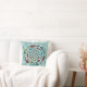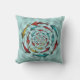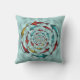 This colourful pillow features an ever-tightening circle of colourful Koi fish in red, gold, orange, and turquoise, all over a watery aqua background. Same image on both sides.