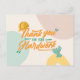 This Labour Day postcard is designed to show appreciation for hard work and dedication. Featuring a bright and playful design with a hard hat, gloves, and colourful abstract shapes, it sends a heartfelt 'Thank You for Your Hard Work' message. Ideal for companies, colleagues, or anyone looking to express gratitude on this important holiday. The vibrant colours and cheerful style make it a standout card for celebrating Labour Day.