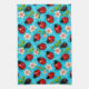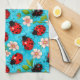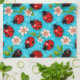 Colourful Ladybug Pattern with Flowers Tea Towel