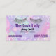 This is a colourful lash technician business card