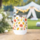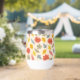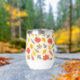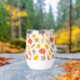 This design displays a charming and vibrant fall-themed pattern featuring a variety of colourful leaves. The background is a soft beige, allowing the leaves to stand out in hues of red, yellow, orange, green, and pale blue. The leaves are arranged in a playful and scattered manner, with each leaf type showing distinct shapes and veins, representing various species of trees. The overall design is lively and whimsical, capturing the essence of the autumn season with a touch of warmth and cheerfulness.