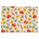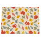 This design displays a charming and vibrant fall-themed pattern featuring a variety of colourful leaves. The background is a soft beige, allowing the leaves to stand out in hues of red, yellow, orange, green, and pale blue. The leaves are arranged in a playful and scattered manner, with each leaf type showing distinct shapes and veins, representing various species of trees. The overall design is lively and whimsical, capturing the essence of the autumn season with a touch of warmth and cheerfulness.