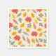 This design displays a charming and vibrant fall-themed pattern featuring a variety of colourful leaves. The background is a soft beige, allowing the leaves to stand out in hues of red, yellow, orange, green, and pale blue. The leaves are arranged in a playful and scattered manner, with each leaf type showing distinct shapes and veins, representing various species of trees. The overall design is lively and whimsical, capturing the essence of the autumn season with a touch of warmth and cheerfulness.