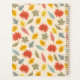 This design displays a charming and vibrant fall-themed pattern featuring a variety of colourful leaves. The background is a soft beige, allowing the leaves to stand out in hues of red, yellow, orange, green, and pale blue. The leaves are arranged in a playful and scattered manner, with each leaf type showing distinct shapes and veins, representing various species of trees. The overall design is lively and whimsical, capturing the essence of the autumn season with a touch of warmth and cheerfulness.