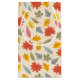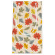 This design displays a charming and vibrant fall-themed pattern featuring a variety of colourful leaves. The background is a soft beige, allowing the leaves to stand out in hues of red, yellow, orange, green, and pale blue. The leaves are arranged in a playful and scattered manner, with each leaf type showing distinct shapes and veins, representing various species of trees. The overall design is lively and whimsical, capturing the essence of the autumn season with a touch of warmth and cheerfulness.