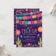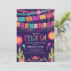 Colourful let's fiesta rehearsal dinner invitation featuring bunting flags, flowers, confetti & cactus plants